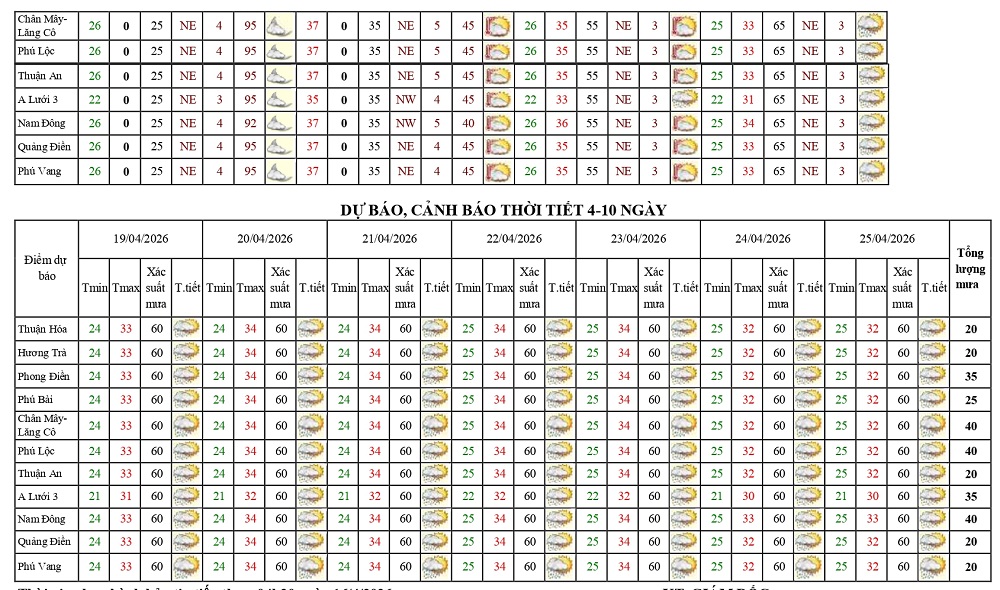 Bản tin dự báo thời tiết ngày 16/4/2026 và 10 ngày tiếp theo